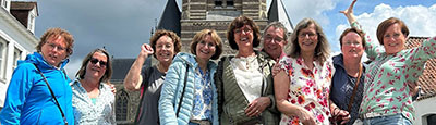 Op zaterdag is het de dag van Happen en Trappen een fietstocht van pakweg 50/60km. met tussenstops waar we telkens iets eten of drinken. Het is goed weer dus extra genieten. In de avond wordt er flink gezongen waarbij de liedjes onder andere uit het repertoire van de voorstelling Bloedmaan komt, welke we in november zullen hebben. De liederen worden door de deskundig jury Joost Jansen en Ludwig Attelvelt beoordeelt. We bakken er eigenlijk nog niets van, moet de conclusie zijn.