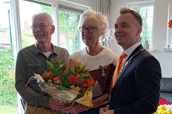 Na het opspelden van het lintje moest de burgemeester snel verder voor een volgend lintje, maar hij moest niet ver. Ook Marijke werd daarna immers verrast met het eremetaal. Haar verdiensten liegen er ook niet om met ziekenbezoeken, sponsortochten, voorgaan in de kerkdiensten maar ook werkzaam als voorzitster bij de Zonnebloem.