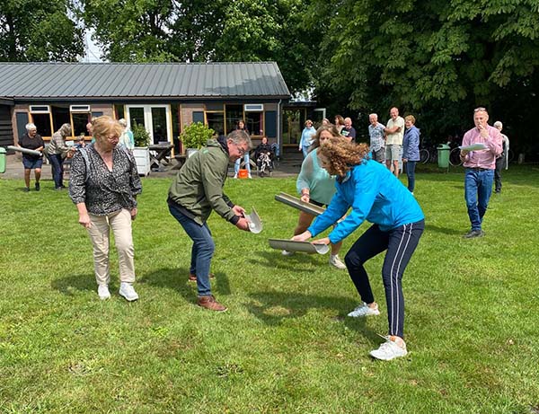 De zaterdag wordt ingevuld door een spelletjes commissie. De spellen worden zowel binnen als buiten gespeeld. Dit jaar tussen de buien door en velen werden dus erg nat! Maar dat kan de pret niet drukken. Om 19.00 uur hebben we een optreden in de kerk van 'de Moer', tijdens een dienst die wordt voorgegaan door Joost Janssen. Het is een mooie Pinksterviering geworden.