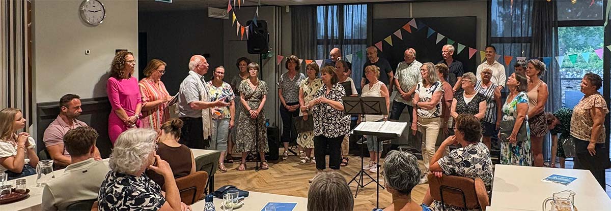 Op woensdag 2 juli 2025 hebben we de laatste koor-oefenavond van het seizoen aangegrepen om een open repetitie te houden in de vorm van een zomeravond concert. Maar alsof dat niet genoeg zou zijn is het tevens de gelegenheid dat Elly in het zonnentje wordt gezet omdat ze nota bene 50 jaar lid is van Amicanto.