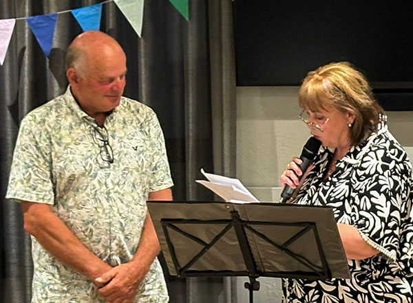 Hierna is de beurt aan Joost Jansen die lovende woorden spreekt en een decoratie opspelt wegens het 50 jarig lidmaatschap. Vervolgens schenkt Carina namens het koor ook een presentje, want we zijn trots op Elly. Ze is begonnen in het kinderkoor en nu nog steeds stuwende kracht in ons midden. Elly spreekt tot ons een korte Amicanto geschiedenis en zet haar Bart in het zonnetje, omdat hij haar altijd ondersteunt.